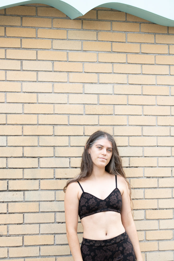 Pull-on style in black / brown floral jacquard